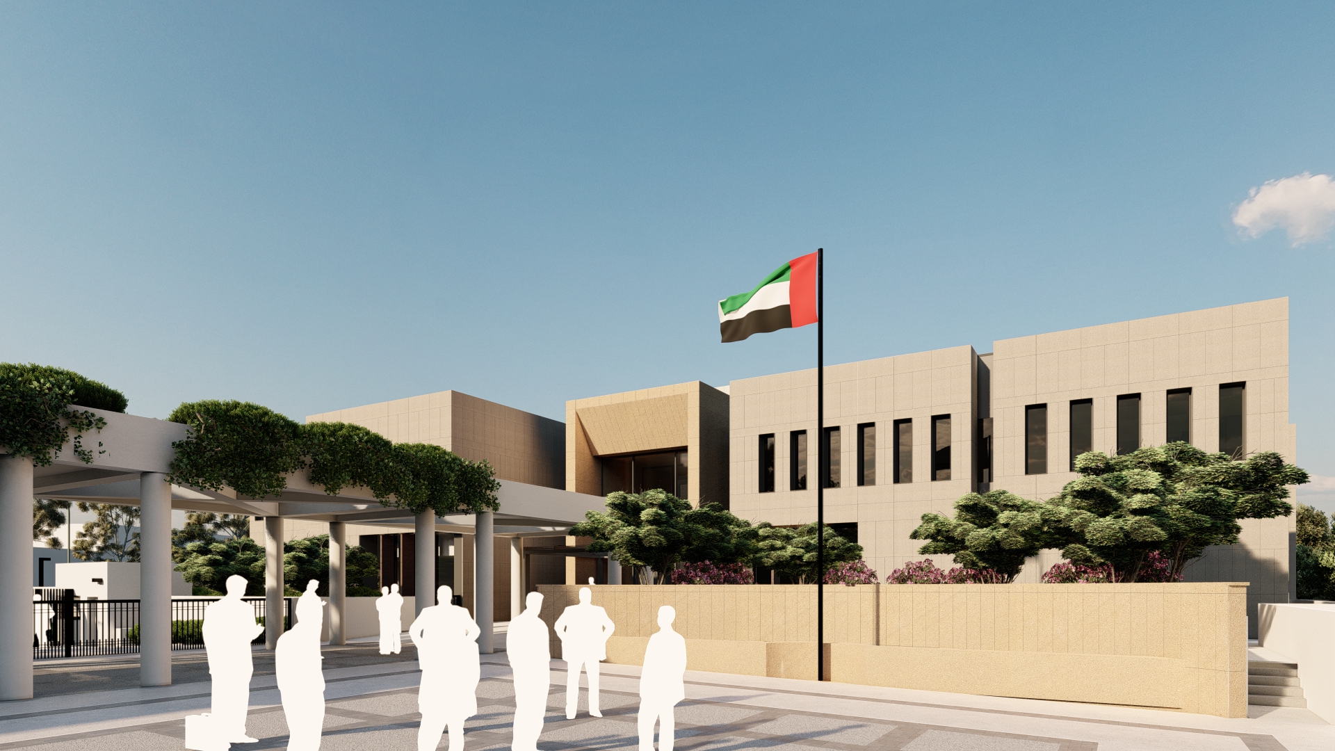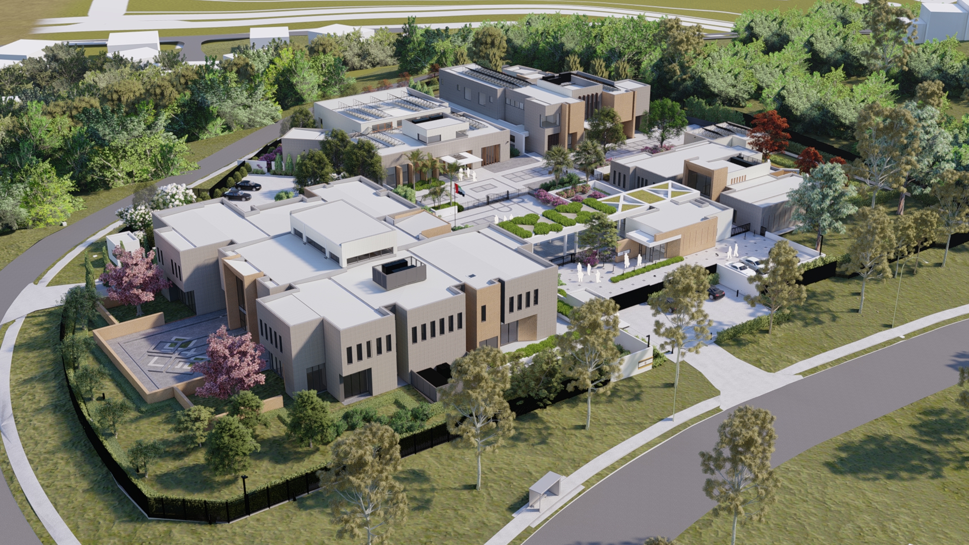 The Government of the United Arab Emirates is undertaking a prestigious diplomatic project in Canberra, Australia. The works, currently under construction and scheduled for completion in early 2026, cover a large site of approximately 14,000m². This project includes approximately 4,900m² of diplomatic facilities including a large two-storey Embassy with basement parking, a two-storey Ambassadorial Residence with associated recreation facilities and staff accommodation, a single-storey Office Building for diplomatic staff, as well as a Reception Building for guests. Smaller visitor arrival, site security and garage facilities are provided.